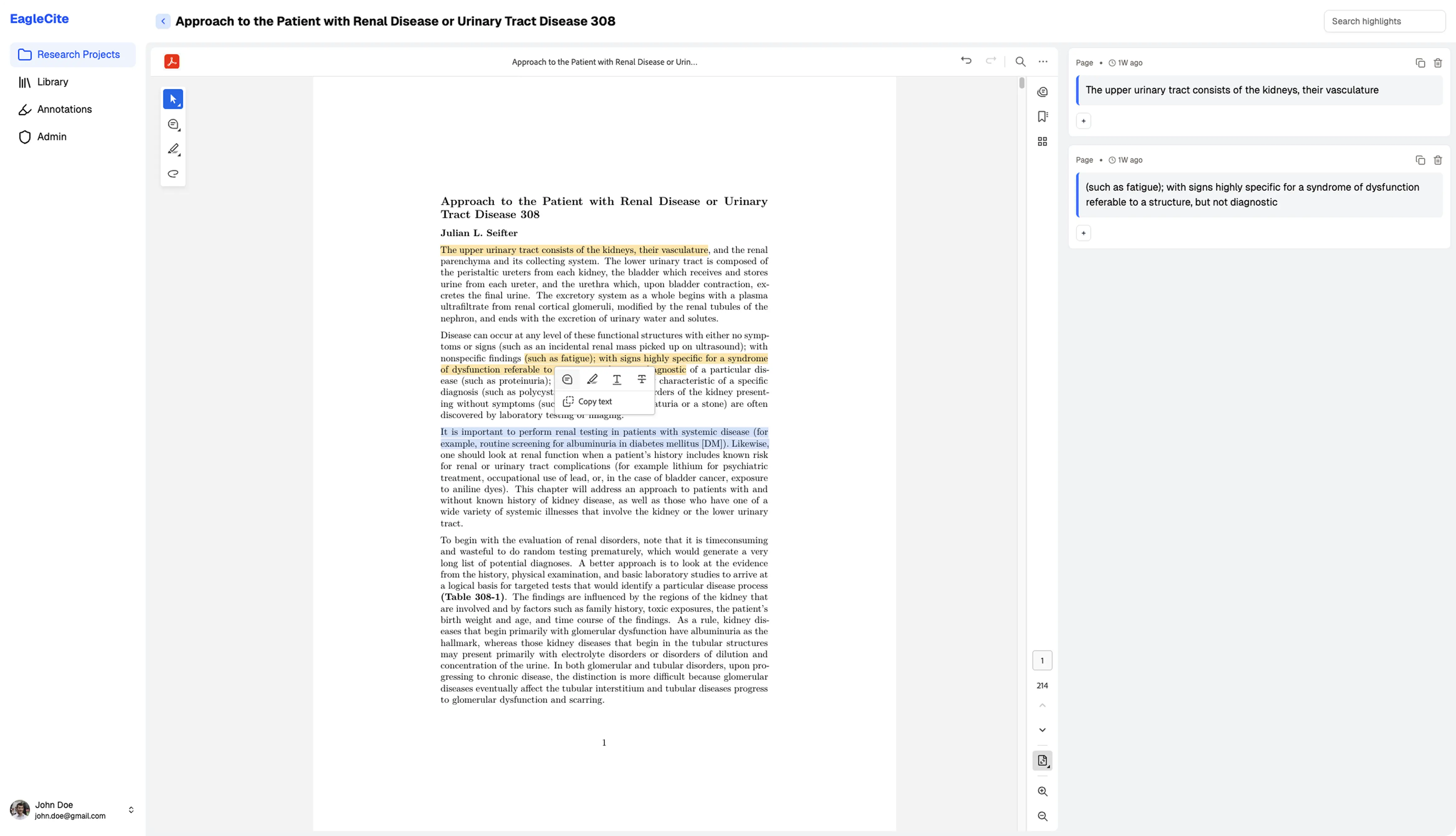 Eagle Cite is a modern and advance citation manager, an alternative to Zotero. Upload and read your research paper within Eagle Cite, highlight important information and find them easily later with our advance search feature.